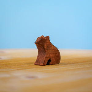 What a sweet little bear. The Bumbu Toys Brown Bear Cub Sitting is waiting obediently, maybe for some honey? In beautiful solid timber, he features a dark brown coat and black and white eyes.