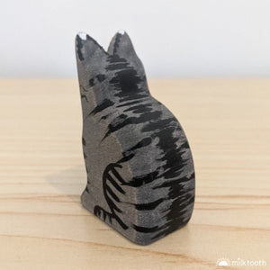 Bumbu Toys has crafted a lovely charcoal grey Cat, with black tabby stripes and striking green eyes. She has such a pretty and detailed face.