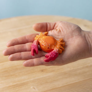 The Bumbu Toys Crab is a chunky fellow with bright red claws (watch out!) and a rich orange body, all carefully decorated with tiny handpainted white spots. Part of theBumbu Toys Ocean range.