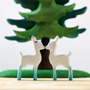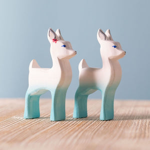 A little fawn frolicking in frozen wintery landscapes, the Bumbu Toys Fawn in White & Blue features a gorgeous handpainted blend of snowy white and pale, icy blue, along with a detailed, gentle face. Our little Ice Fawn does not have flowers painted on its ears as shown in some of the photos.