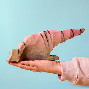 A truly impressive landscape piece, the Bumbu Toys Howlstone has been perfectly balanced to allow for a beautiful cantilvered effect. This creatres a wonderful cliff for a howling wolf, a scouting meerkat, a hunting eagle, and more. It also has a small, shallow cave carved into its side that, along with the overhang, can provide shelter for animals. The beautiful Bumbu Howlstone has been handpainted in a blended mix of rusty pink and grey.