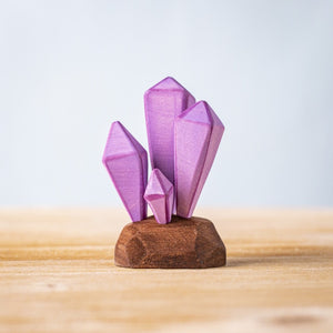 The Bumbu Toys Purple Crystals have the most beautiful form. There are four elongated diamonds in a rich purple mounted on a brown base. The Crystals make a wonderful landscaping piece in a dragon, dinosaur, gnome, or fairy small world play scene.