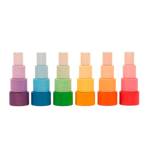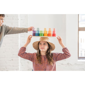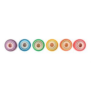 Grapat Nesting Bowls are open-ended and versatile. Your child might like to stack them, sort them, colour match them, roll them, build with them, and use them to hide and store Nins, Mandalas, and other small treasures.
