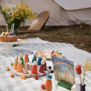 Grapat is well-known for their beautiful, hand-finished wooden mandala pieces, bugs, and people, which are deliberately without gender and facial expression, allowing children to come up with their own stories and scenarios for their little friends. Made from natural timber with water-based colour stain, Grapat toys feel beautiful in the hand and are fantastic in sensory and small world play.