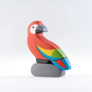 The colourful Mikheev Red Parrot has been handcrafted from solid timber and then carefully handpainted in red, blue, yellow, green, grey, white, and black.
