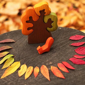 As each Mikheev wooden toy is created and finished by hand, they vary slightly in terms of shape, colouring, and the amount of woodgrain or knots showing through the colouring. Each piece is perfectly unique.
