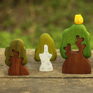 Mikheev wooden toys are handmade in Russia from natural birch, ash, or oak wood. They're created with flat bases, making them easy to stand up during small world play. Mikeev toys are finished with a non-toxic acrylic lacquer. The finish is mostly matte with a slight sheen.