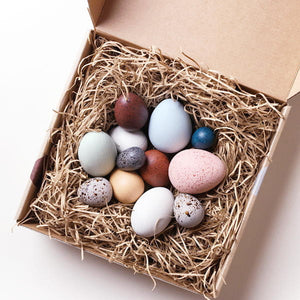 Include the eggs in a very special Easter egg hunt, inspire a walk to spot birds' nests, or spark a discussion on the various types and shapes of eggs and the birds they might belong to. The handpainted detail on the play eggs is exquisite.