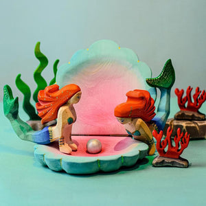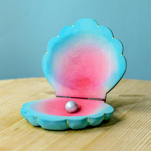 The Bumbu Toys Clam Shell with Pearl will delight just about any child, young and old! Beautifully painted in ombre pink, turquoise blue, and brown, the shell features stunning curves and grooves and is hinged so that it can open up to reveal a single, large, glistening metallic pearl inside. Part of the Bumbu Toys Ocean range.