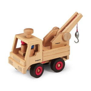 The Fagus Crane Extension can be paired with the Basic Model Truck to turn it into a crane tow truck. The tow hook is wound in and out using a large wooden knob on the side of the extension. This beautiful natural beechwood extension is suitable for use only on the Fagus Basic Model truck and is easily slotted into the rear of the vehicle. The truck shown in the second photo is not included, but is sold separately.