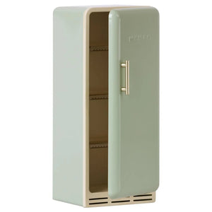 The Maileg Miniature Fridge in Mint is a gorgeous addition to any doll kitchen. It's made from metal and includes frosted shelves inside. The Miniature Grocery Box (sold separately) would be a lovely accompaniment to the Mint Fridge.
