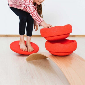 This listing is for a single Stapelstein Stacking Stone in Red. Other Stapelstein items shown in the photos are sold separately. You might like to pair this Stone with a Stapelstein Balance Board, sold separately.