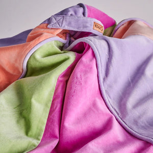 Kip and Co's Pretty Things Velvet Beanbag Cover is a gorgeous combination of coral pink, dusty lavender, green, and fuchsia. Made from soft and plush 100% cotton velvet, this beanbag is the perfect place to plonk yourself down, whether for relaxation or for play! A favourite for kids and adults alike, whether you're reading a book, watching a movie, or just chilling out, this beanbag will plump you up in total comfort.