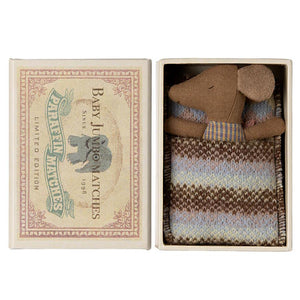 The Maileg Sleepy-Wakey Baby Mouse has a little trick! She might look like she's wide awake, but flip her over and you'll see she's actually fallen fast asleep. Our Baby Mouse wears a non-removable gingham onesie and is snuggled into knit bedding.
