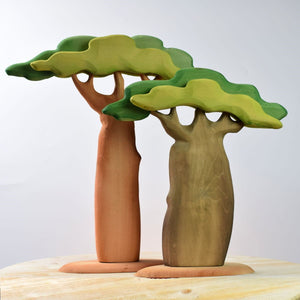 The wonderfully large Bumbu Toys Baobab Tree Thick has a beautiful extra-thick brown trunk topped by arching foliage in light green and medium green. One of the largest of the Bumbu trees, the Thick Baobab is a lovely addition to any small world play scene, especially paired with a set of lions to create an African savanna.