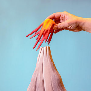 Beware the bubbling Volcano! Bumbu Toys have outdone themselves with this masterpiece. The beautiful, erupting Bumbu Volcano comprises two freestanding pieces and stands at a proud 32cm tall. The Volcano comes complete with removeable lava and two clouds. It can change from a placid mountain to a dangerous volcano with the addition of just one firey orange piece. A wonderful addition to the Bumbu Toys Dinosaurs range