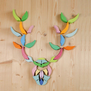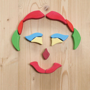 The Grimm's Lara wooden blocks set comprises 73 separate pieces plus tray. A truly magnificent wooden puzzle, the organic curves and shapes of the blocks also lend themselves to challenging stacking games, intricate mandalas, clever ball runs, and as faces, animals, hills, waves, flowers, and more in 2D picture-making and small world play.