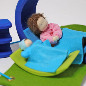 Grimm's Mobile Home is the cutest little wooden doll house that comes complete with several pieces of timber doll furniture that nest together into a little 3D puzzle. The whole thing packs up into a handy felt cover with a string handle for carrying.