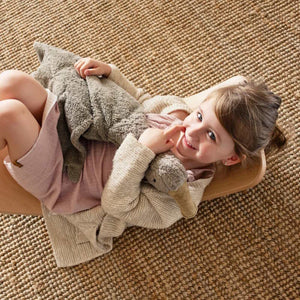 Most Senger animals are filled with sheep's wool from controlled organic animal husbandry, obtained from wandering shepherds in the Eifel region. Sheep's wool filters pollutants from the room air, has a temperature-regulating effect, and absorbs moisture. Sheep's wool does have a natural odour. The smell is caused by lanolin, the natural wool fat that protects against dirt and makes the wool waterproof. It also protects the individual wool hair from drying out and becoming scratchy. The smell on your Senger toy will mostly disappear after a while, but never completely.