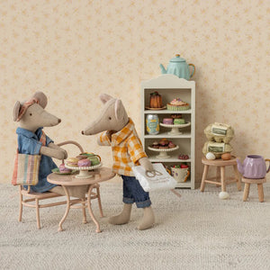 Maileg Mice tend to fit a 1:12 scale doll house well. Dad Mice are compatible with Maileg Mouse furniture.