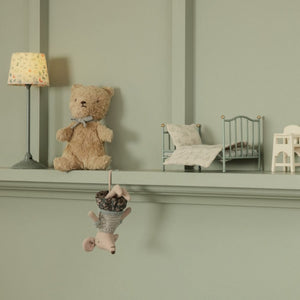 Spot cleaning is recommended, but if your Maileg friend needs a more thorough wash, Maileg recommends gentle handwashing using warm water and mild soap, or gentle machine washing in a wash bag at 30 degrees, then air drying flat. Once your Maileg toy has dried, please gentle massage it back into its original shape and form.