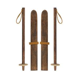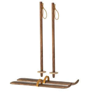 This Maileg Ski Set fits Maileg Mum and Dad Mice - perfect for zooming down the mountain! The set includes two skis and two poles. All pieces are made of timber and include little elastic loops for easy attachment to mice feet and hands. Also fits Grandparent Mice.