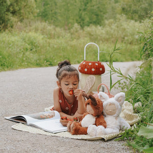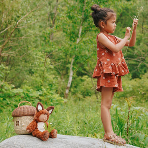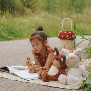 Dearest Finnley Fox, the dreamy den dweller of the woodland and our newest member of the Olli Ella Cozy Dinkums! With the softest rust-coloured fur and sleepy flopsy body, Finnley Fox is perfect for snuggles and sweet dreams. You might find him curled up by the fire or exploring a dreamy moonlit forest, but there's nothing Finnley Fox loves more than snuggling into slumber with his friends.