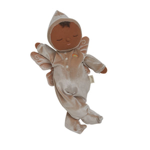 Olli Ella Dozy Dinkum Fairy Ada is a dream-keeper and magic-maker. Visiting from Rainbow Realm, she likes to tap her feet together and wave a wand to make all your dreams come true! Dressed in a soft velvet onesie with shimmering fairy wings, Ada is designed for the coziest cuddles and the dreamiest adventures. Her floppy body and gentle weight make her perfect for tiny arms to hold close during nap time or storytime.