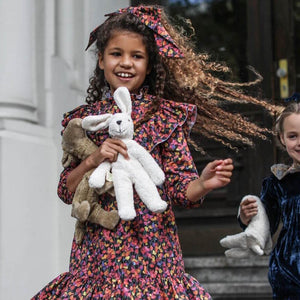 The Senger Small Floppy White Rabbit is ready for snuggles and cuddles. This sweet bunny rabbit features soft white organic cotton fur with floppy ears, plus a fill of pure sheep's wool. This is the smaller size of Senger Floppy Animals but he's still lovely and long at 30cm tall. A beautiful Easter gift.