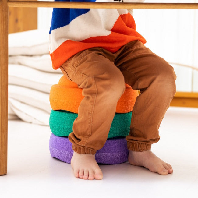 The Stapelstein Balance Board in this set complements the Stones and can be used in even more ways to wobble and move. Children might also like to add it to the top of a tower as a "seat" or use it as a pretend play dinner plate. How long can you balance it on top of your head?