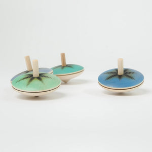 The Mader Frutti Di Mare Spinning Top is a medium-sized, smooth-running, easy to use top, suited to just about everyone. Its colour varies between blue and green and every Frutti Di Mare top is unique, featuring a starburst pattern on top that blurs and changes as the top spins.