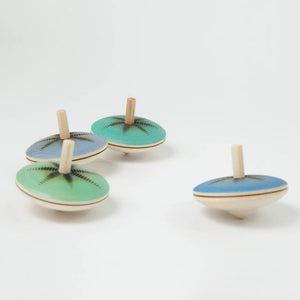 Mader have made the best wooden spinning tops for years. The Frutti de Mare is one of the best spinners in their collection. Easy to spin but it lasts twice as long as the wide bodied tops. I like the design, although the blue and greens are not as vibrant as other Maders. But it is worth it for the great spin time.