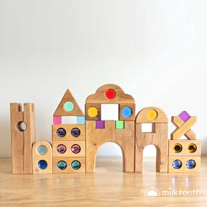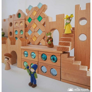 Bauspiel's Castle Building Extension Set is made up of lovely solid blocks that you could also combine with an existing wooden block set for even larger castles and structures. Figurines not included but we do have some that might suit, including the Mikheev range of royals and knights, the Evi Doll Set of 3 Knights and the Olli Ella Holdie Fairytale range.