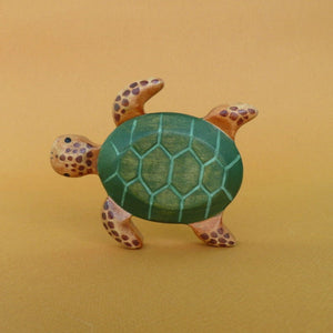 The beautiful wooden Sea Turtle by Forest Melody will be perfectly at home in an oceanic small world play scene. With a detailed emerald green shell, our stunning Sea Turtle (or Tortoise) has light brown legs and head that have been carefully covered in deeper brown spots. This is an intricately handpainted toy to be loved and treasured.