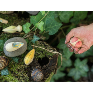 Made from natural timber with water-based colour stain, the 12 Wild creatures feel beautiful in the hand and are simply wonderful for outdoor, messy, sensory play. Just give each toy a gentle wipe with a slightly damp cloth afterwards and remember, they're designed for play and it's ok if they get a little worn or dirty; you will treasure those marks as your children grow up.