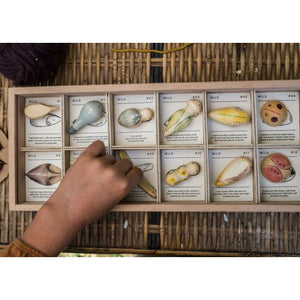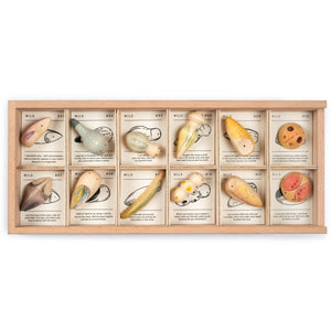 • Set of 12 wild wooden creatures presented in a timber display box with sliding lid