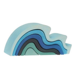 The very beautiful Grimm's Large Water Stacking Toy features graduating shades of blue, aqua, and navy. This beauty is also know as the Grimm's Waterwaves.