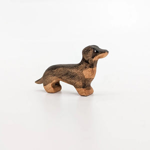 Who doesn't love a sweet little sausage dog? The NOM Handcrafted Black & Tan Dachshund has a distinctively long body, an enquiring face, and a black coat with contrasting lighter chocolate brown chin, bib, feet, and belly.