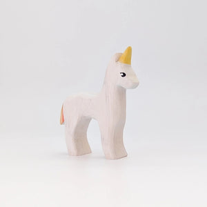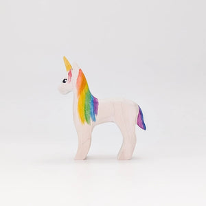 The NOM Handcrafted Rainbow Unicorn Foal is a sweet and magical creature. The loveliest little wooden toy, she has a carefully handpainted mane and tail in pretty pastel rainbow colours and a horn in golden yellow.