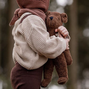 The Senger Small Floppy Brown Bear is a beautiful heirloom quality teddy bear, just waiting to become your child's new best friend. This sweet bear features rich brown organic cotton fur with a fill of pure sheep's wool. He's the smaller size of Senger Floppy Animals, but is still lovely and long at 30cm tall.